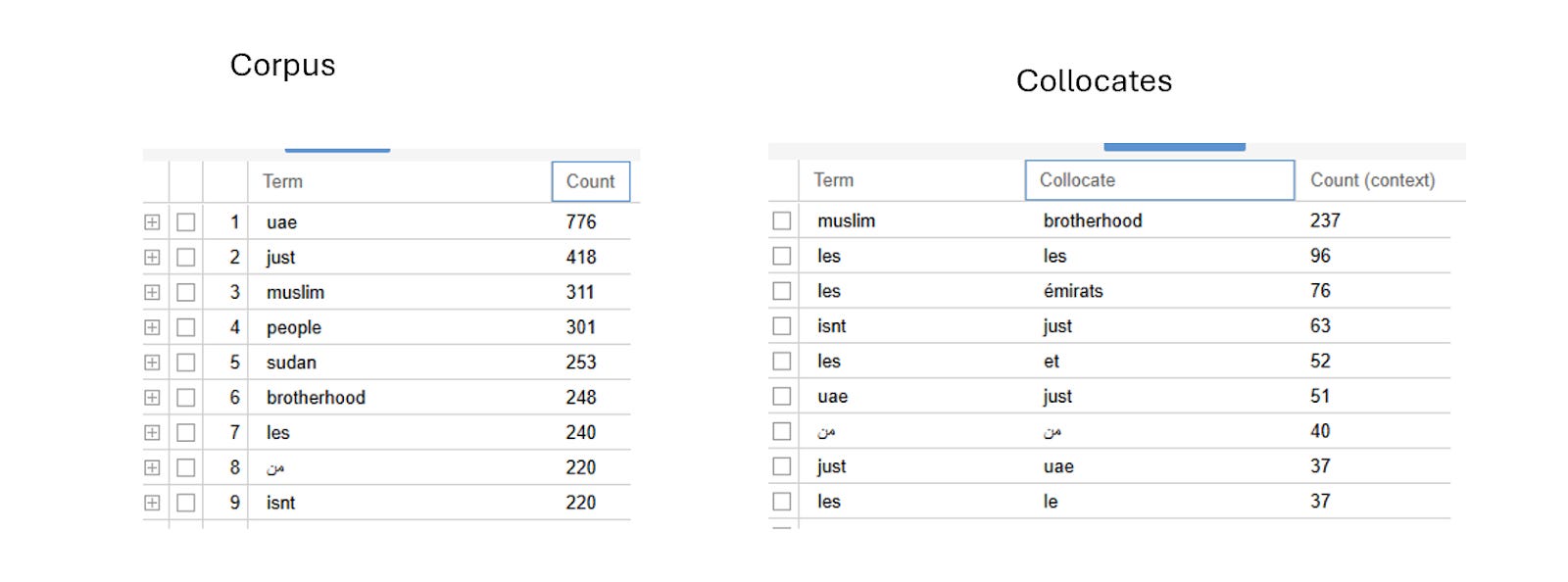 In addition to these quite telling network overlaps, almost all members of the gang are uniformly obsessed with the Muslim Brotherhood. I downloaded all tweets from ten members of the gang. ‘Muslim’ was the third most common word ‘brotherhood’ the sixth (Sudan the fifth). Muslim brotherhood was by far the most common collocate (collocate = habitually juxtaposed word).