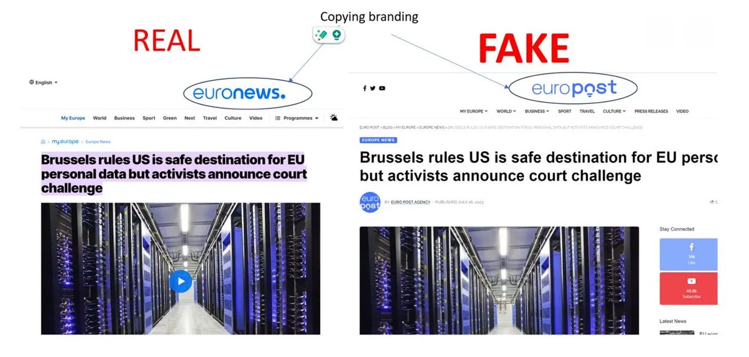 Europost’s website rips off the visual branding of EuroNews. Much of the site’s content was copied directly from Euronews, including text and branding, without attribution or evidence of legitimate syndication.