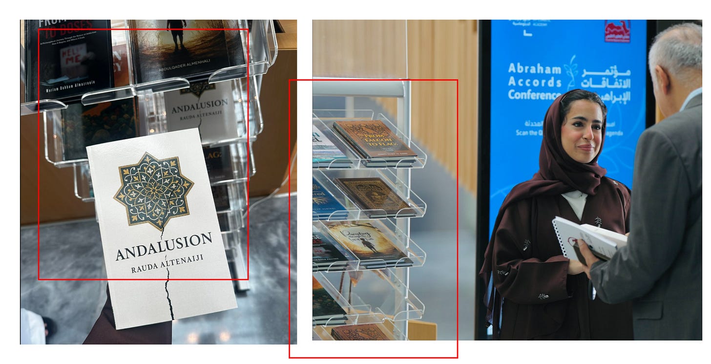 The books seem to be a package deal too. Here is Rauda showing off her book to delegates at the Abraham Accords Conference organized by the Anwar Gargash Diplomatic Academy... As you can see, all of the Gang’s books are on display together!