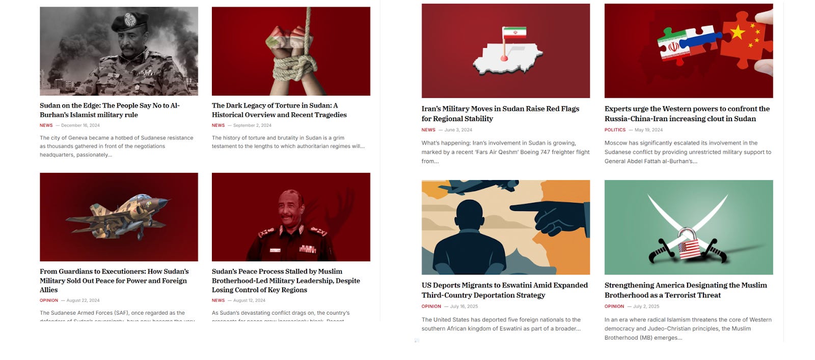 New York Insight has an unusually high number of articles on Sudan for a website with rather limited coverage and one that brands itself as relevant to ‘New York’. The articles in question all focus on criticising the SAF, its links with the Muslim Brotherhood, or the harmful roles of China, Iran and Russia in Sudan.