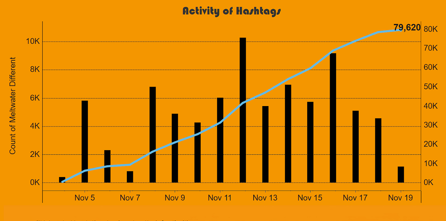 Such bursts are well-suited to platform dynamics that reward novelty and velocity. Concentrated posting is often sufficient to trigger trending mechanisms, after which visibility itself lends legitimacy to the narrative being promoted. New hashtags ensure the algorithm does not begin to ignore the network (which might be the case if they just used one hashtag).